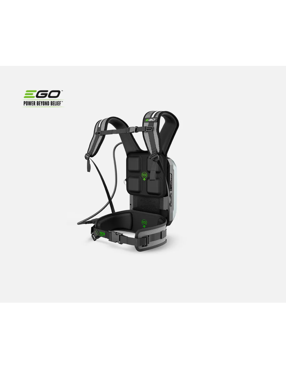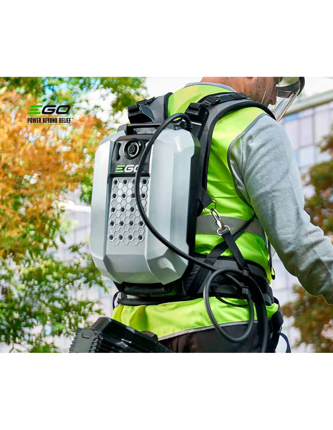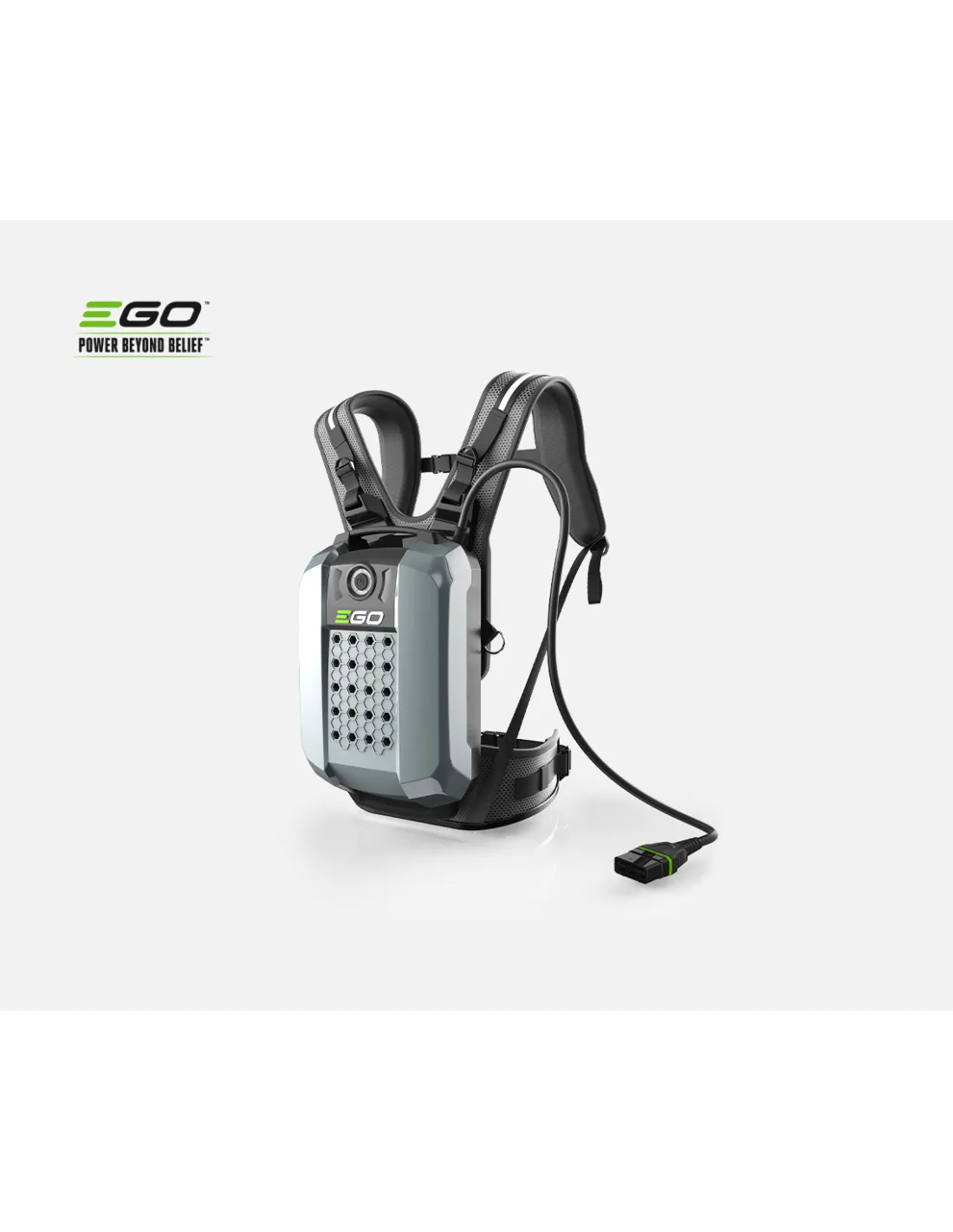 Totalmente resistente al agua, EGO ha diseñado esta batería pensando en la comodidad de quien la use y en aportar la capacidad energética necesaria para durar un día entero de trabajo.