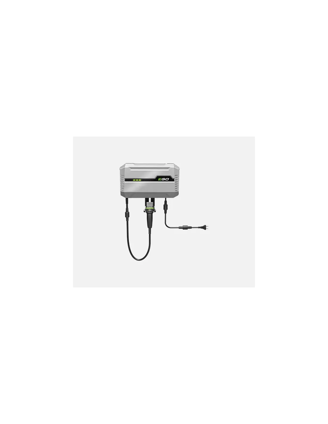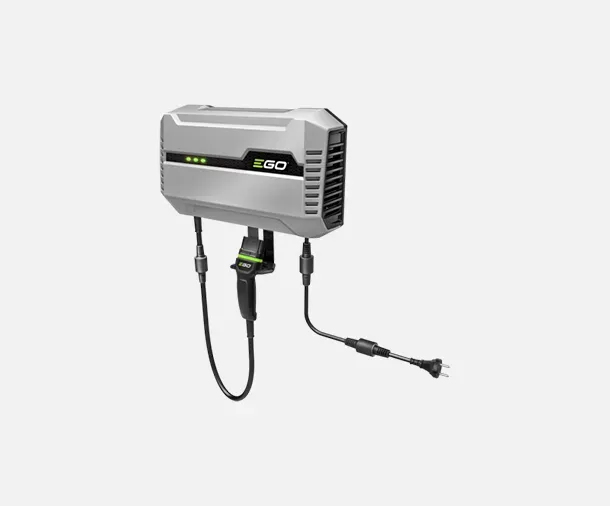 El cargador multipuerto puede fijarse a la pared para mayor comodidad y es compatible con el maletín de carga multipuerto y el tractor cortacésped con radio de giro cero ZT4200E-L. Una vez conectado a la fuente de alimentación, basta con enchufar el cable al maletín de carga multipuerto, o bien directamente al tractor cortacésped Z6, para empezar a recargar las baterías.