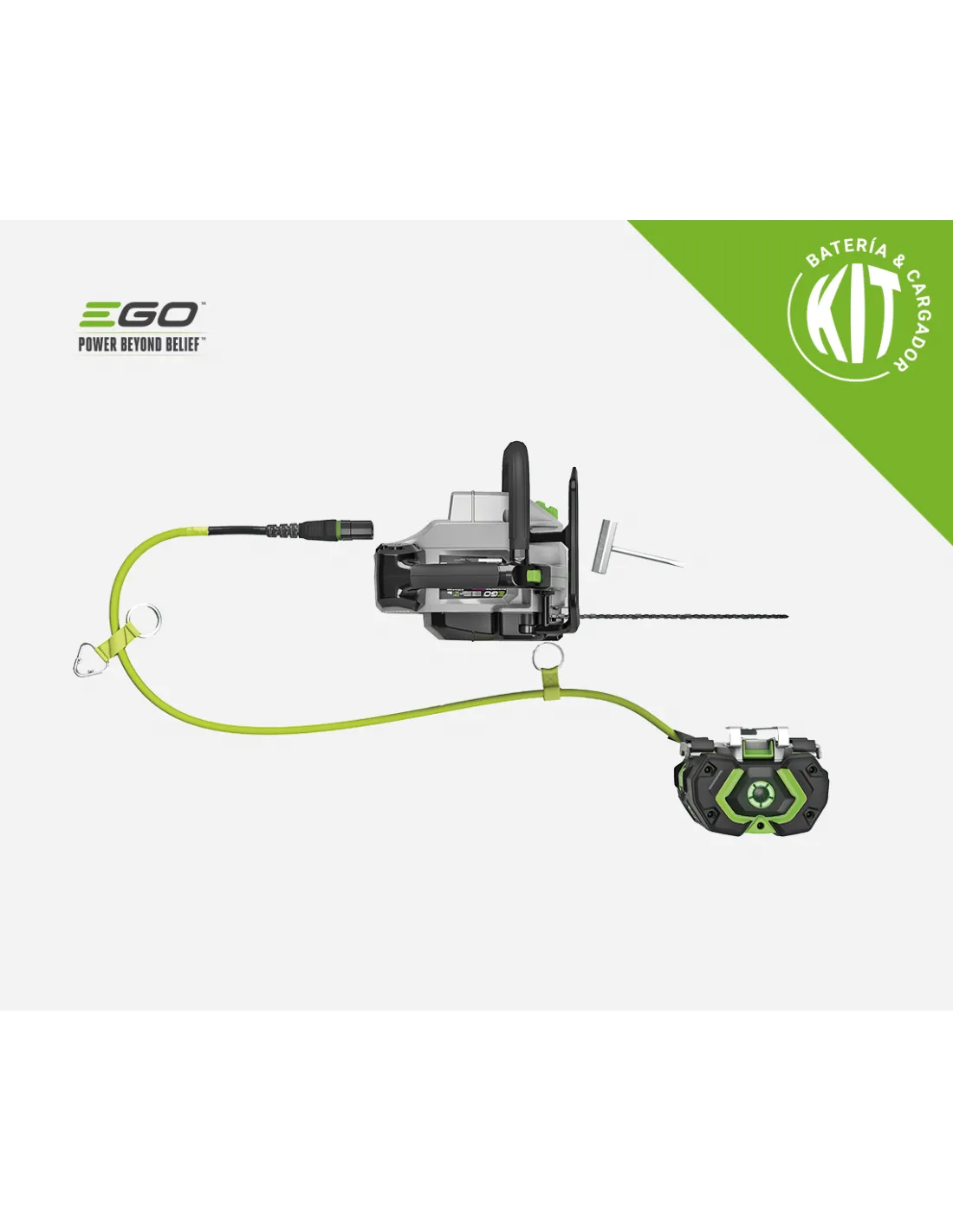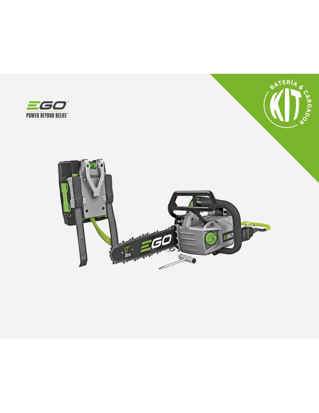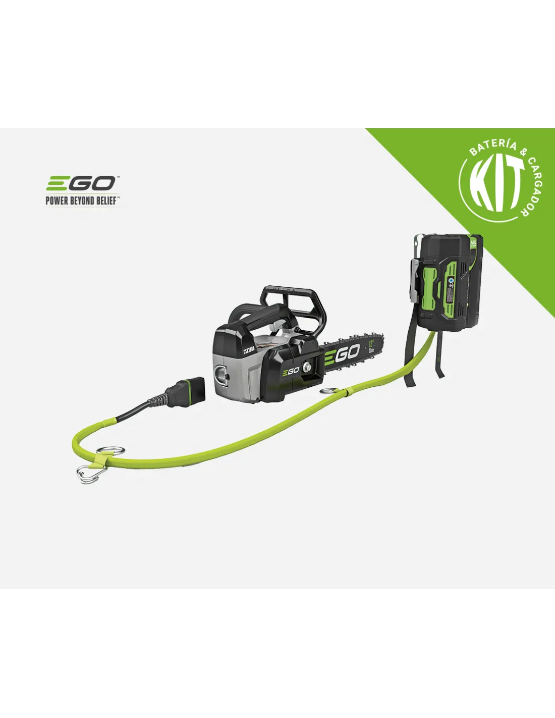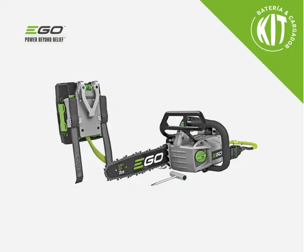 La motosierra CSX3002 es la respuesta de EGO a la demanda de una motosierra profesional a batería manejable, ergonómica y equilibrada. Cuenta con una espada de 30 cm de serie que trabaja a una velocidad de cadena de 20m/s. Su peso de 3,5 es perfecto para evitar las inercias del corte. Ademas, la batería no se integra en la motosierra, sino que la portamos en una mochila para baterías o en el arnés, transmitiendo la potencia a la herramienta a través del adaptador. También se ha desarrolladouna batería especial para esta motosierra, de 4Ah (BA2240), con una autonomía de hasta 200 cortes. Cuenta además con freno de cuchilla (mecánico y eléctrico), indicadores LED de baja batería y bajo nivel de aceite y, como no puede ser de otra forma, gatillo de seguridad.