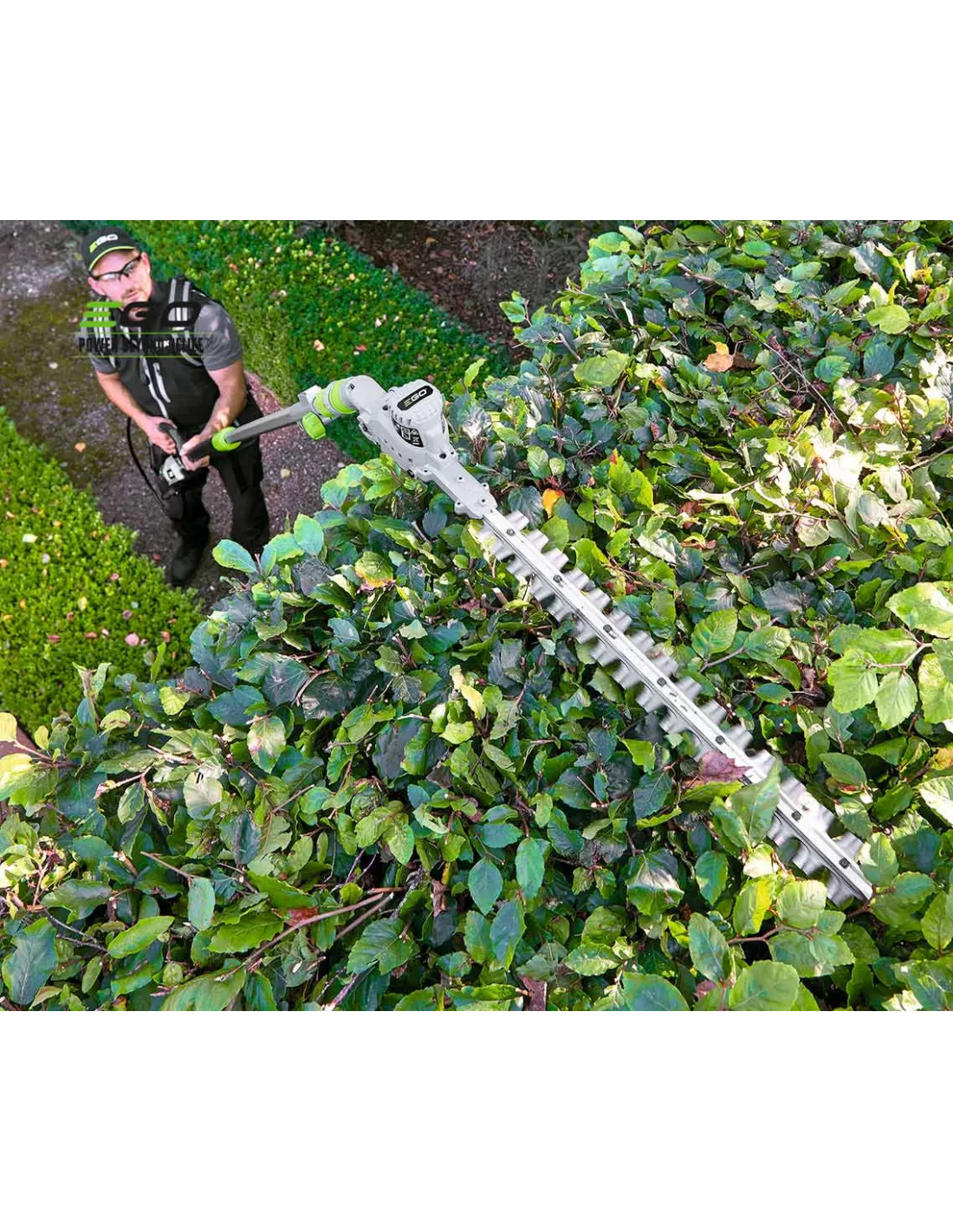 Este cortasetos profesional para poda en altura cuenta incorpora cuchillas de acción dual. Con ellas se logra un mejor perfilado y menores vibraciones mientras se ejecuta el trabajo. Diseñada para ser usada junto con el cabezal telescópico PPX1000, tiene un alcance total de más de 3 metros. Cuenta además con una articulación de 6 posiciones que permite girar la espada hacia la orientación más adecuada para realizar un buen trabajo. Su motor sin escobillas aporta mayor potencia, rendimiento, fiafiabilidad y menores costes de mantenimiento.