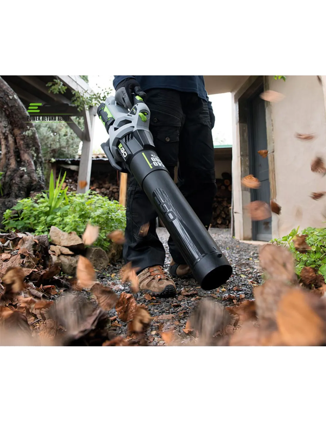 Este soplador es la opción ideal para los que nos gusta cuidar del jardín por nosotros mismos. Pesa poco y puede alcanzar un caudal de aire de 900 m3/h. Más que suficiente para retirar hojas o cualquier otro residuo. Al igual que todos los sopladores de la marca EGO, está equipado con un motor eléctrico sin escobillas, incorporando además una turbina diseñada con tecnología aeronáutica y un tubo de gran diámetro para maximizar el flujo de aire. Viene con una boquilla plana AN5300 como accesorio.