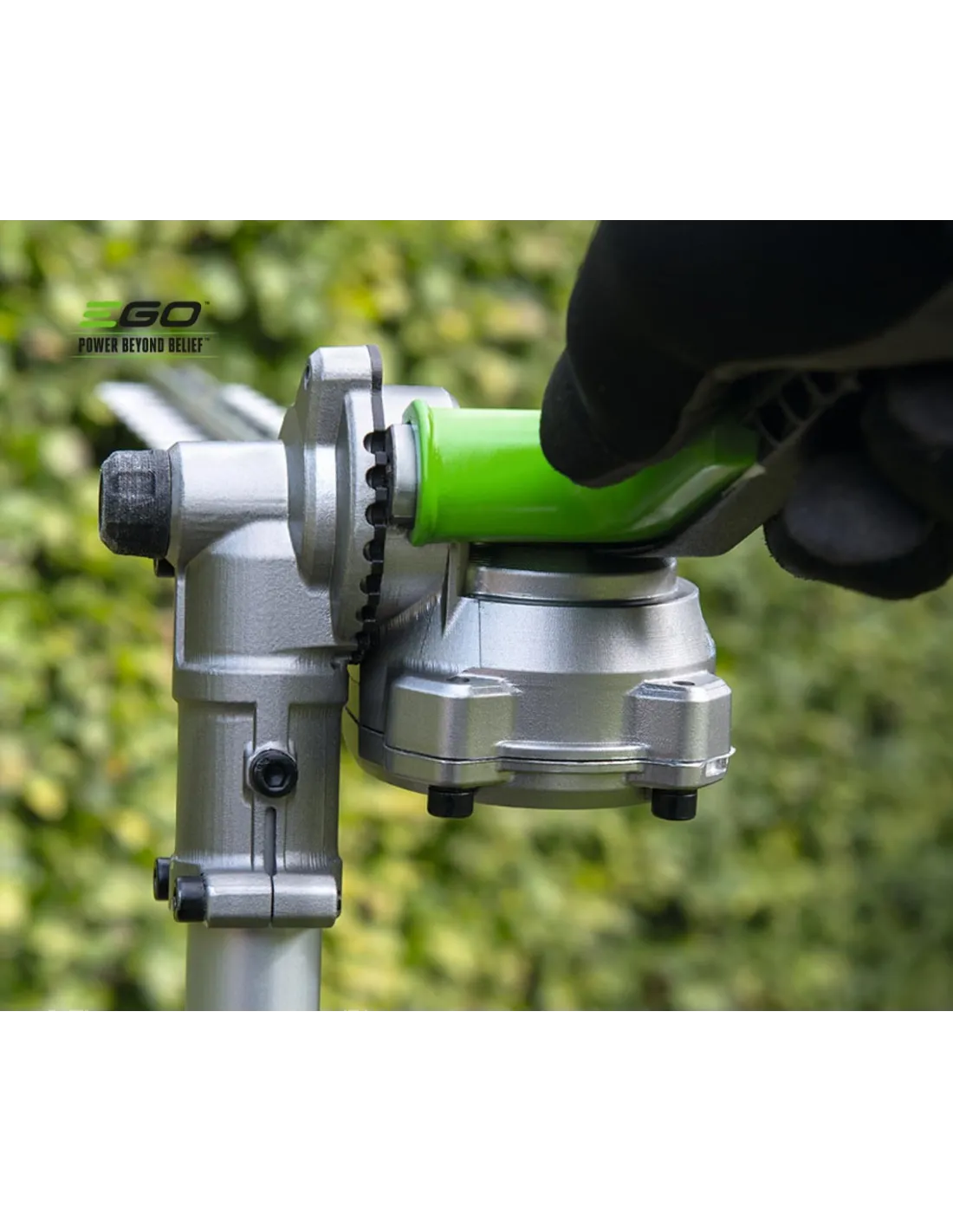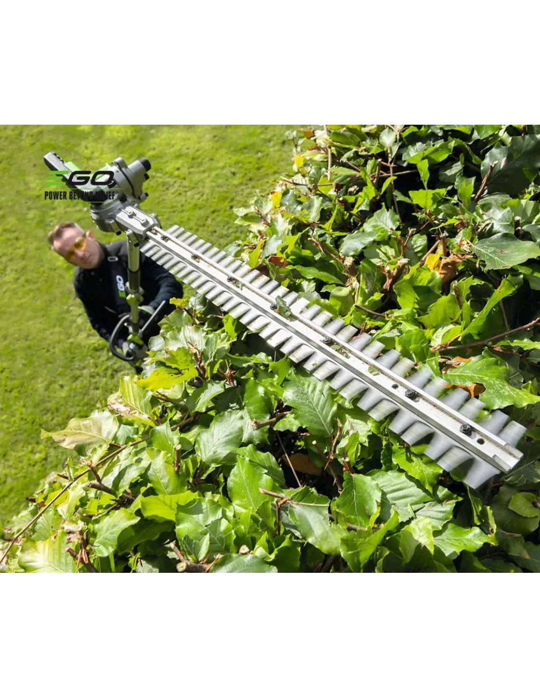 El cortasetos EGO cuenta con una cuchilla diamante, cortada por láser de doble acción. Dos filos para cortar setos altos sin la necesidad de usar una escalera, logrando un trabajo eficaz y 100% seguro.